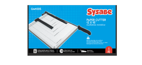 - Guillotina con base de metal, cuchilla de acero inoxidable autoafilable y barra de seguridad. }