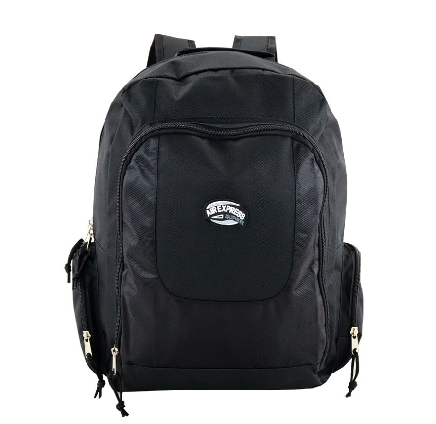 Mochila elaborada en poliéster, con costuras reforzadas, cremallera , bolsillo frontal, laterales, compartimento interno amplio y área acolchada en la espalda. Correas ajustables con acolchado.
